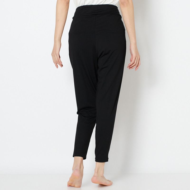 もも周りはゆったり、足元はすっきりとしたテーパードシルエットのヨガパンツ。吸水性があり風合いが柔らかく肌触りの良い天然素材を使用しています。生地には天然の抗菌作用があります。一枚持っていると便利なシンプルなデザインです。