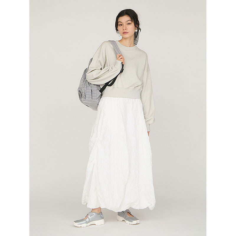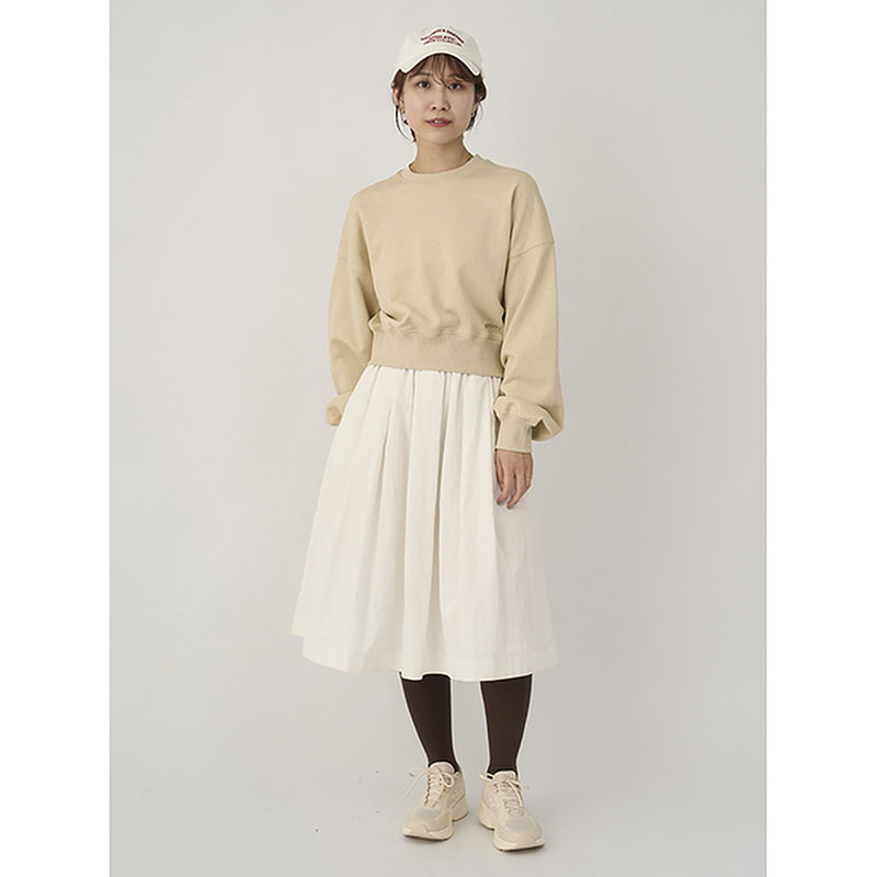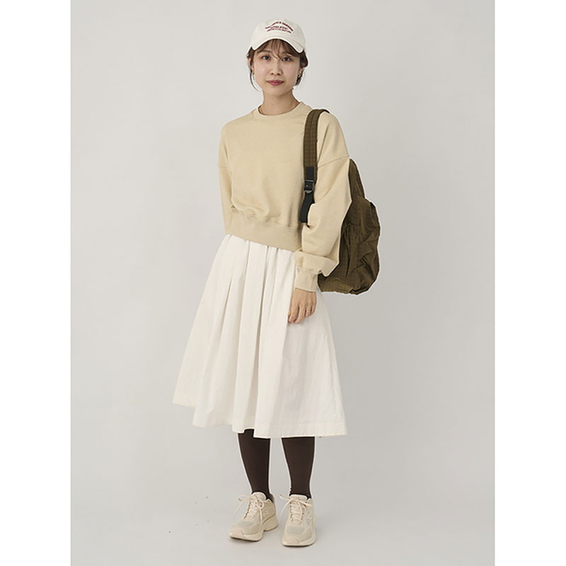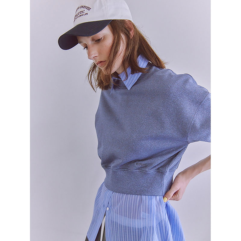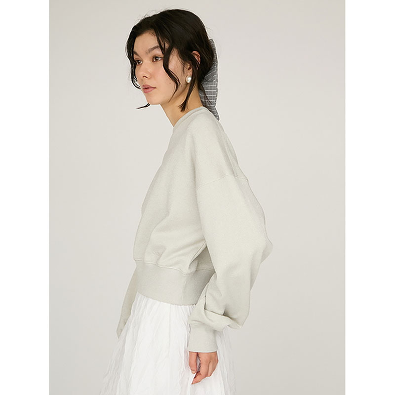 小さめに設定している裾と袖口のリブを活用して、ブラウジングして着こなすとぐっとこなれ感が出ます。裾付近には小さくemmiロゴを配置。