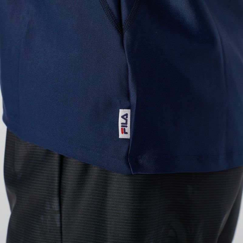 シンプルな無地ベース。袖部分にFILAのロゴ入り。裾ラインの後ろ側が長めのスポーティなシルエット。