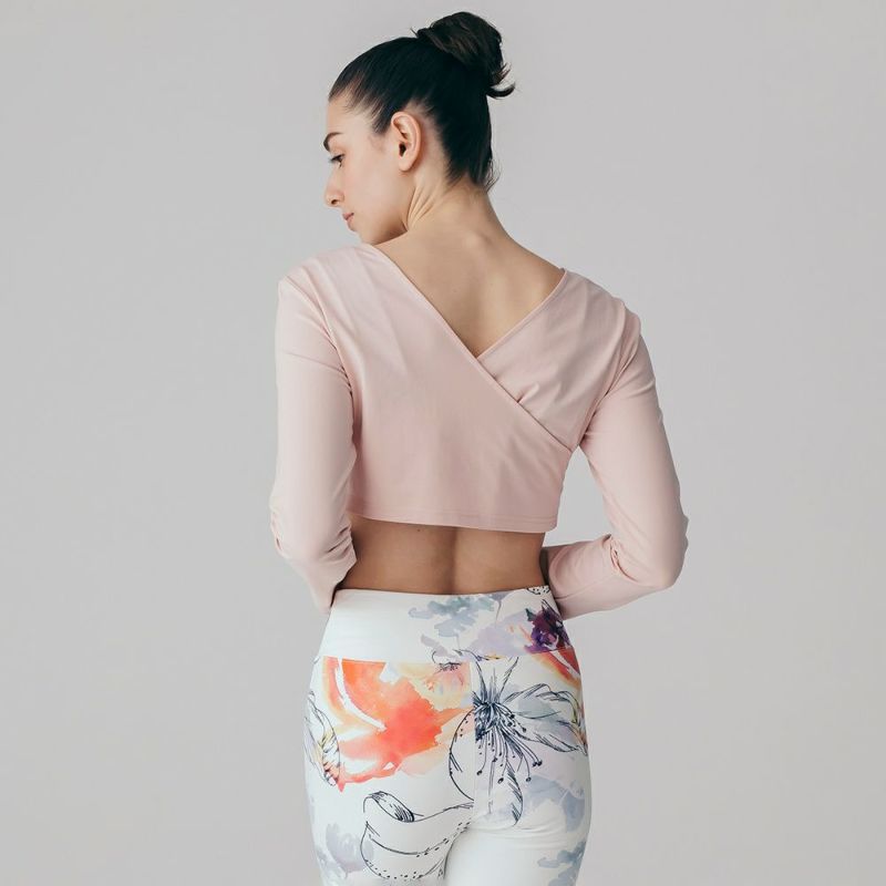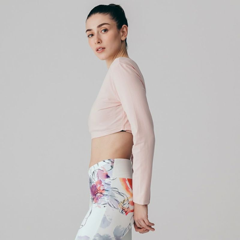 伸びのよいコットンストレッチ素材を使用した長袖トップス。短めの丈感でハイウエストのレギンスと合わせるとスタイルよく着こなせます。背中のカシュクールデザインがポイントです。薄手ながらしっかりとした素材感で、ストレッチ性が高いので着心地抜群。さらりとした肌触りで汗をかいても快適に過ごすことができます。デザインはDOUBLE STANDARD CLOTHINGが監修しています。