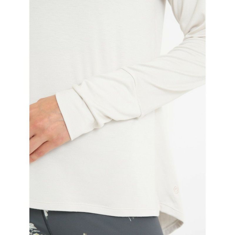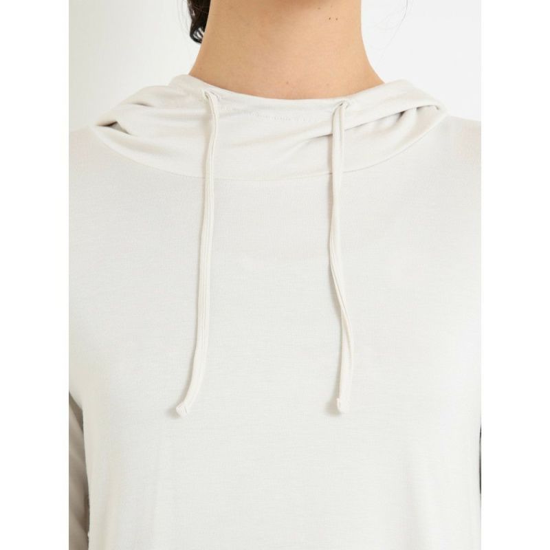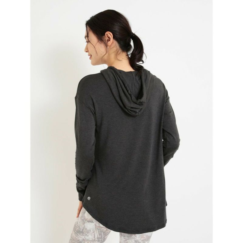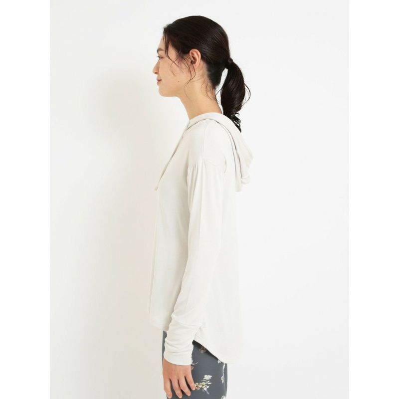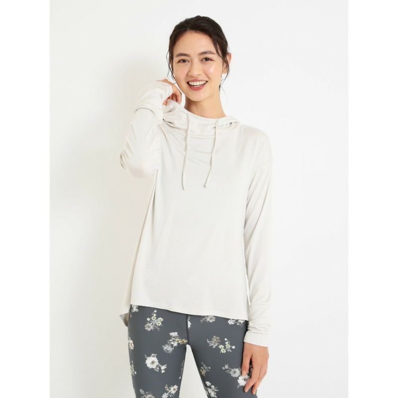 暖か素材を使用したゆったりプルオーバー。ウォームアップやスタジオの行き帰りに活躍する便利なアイテムです。後ろは長め丈でヒップラインも暖かく。袖口の長めの切り替えもポイント。なめらかな肌触りで快適な着ごこちです。