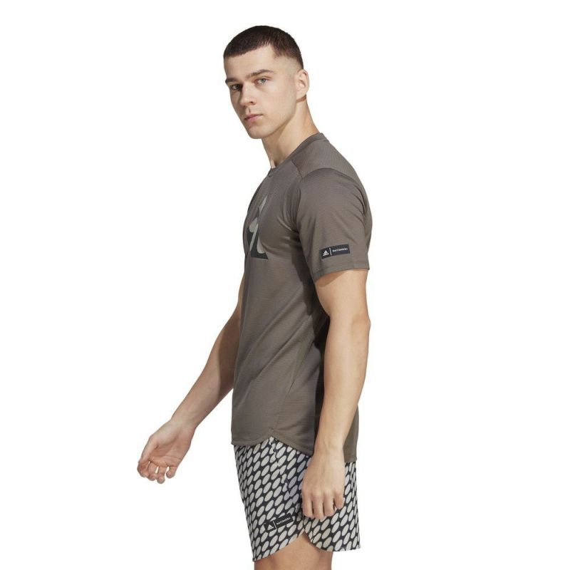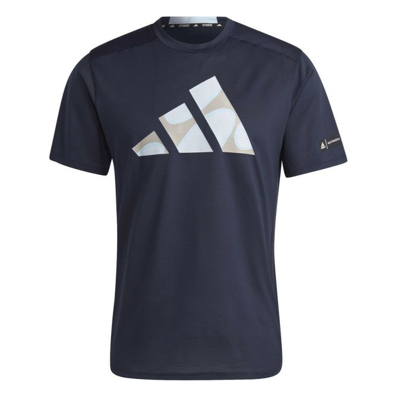 adidasとマリメッコのコラボTシャツ。フロントのロゴデザインがアクセント。トレーニングやタウンユースにおすすめです。