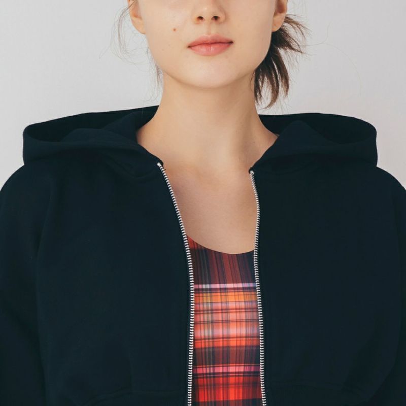 厚みのあるしっとりとした表面感の裏毛素材を使用したショート丈パーカー。ボリュームのある袖とフードにショート丈のバランスが1枚で様になるアイテムです。スポーツシーンはもちろん、秋冬のアウターとしてデイリー使いにもおすすめです。