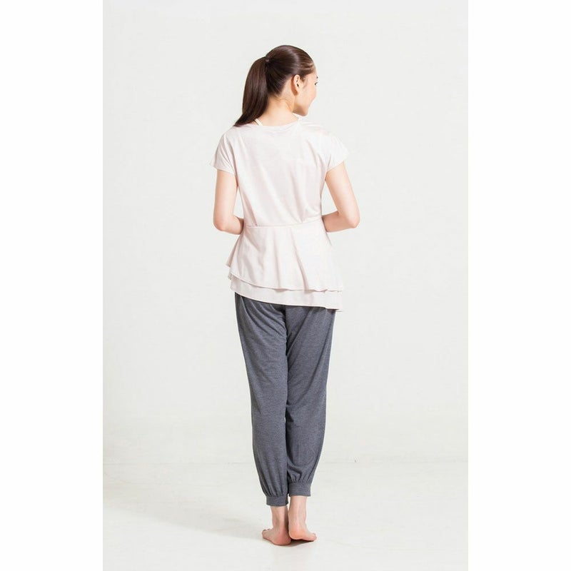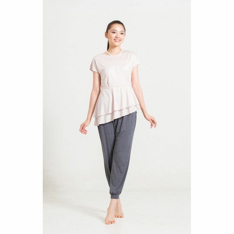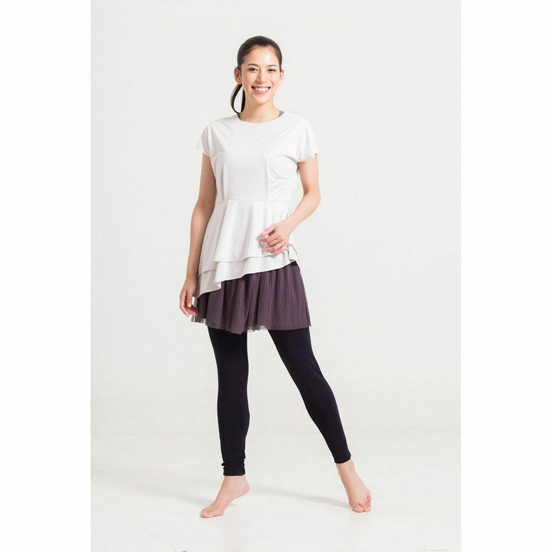 シンプルなフレンチスリーブに、アシンメトリーで立体的な裾のコントラストが個性的なレイヤードトップス。