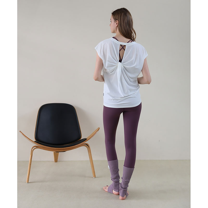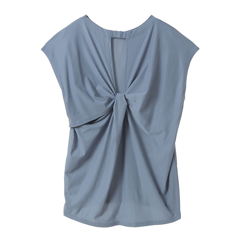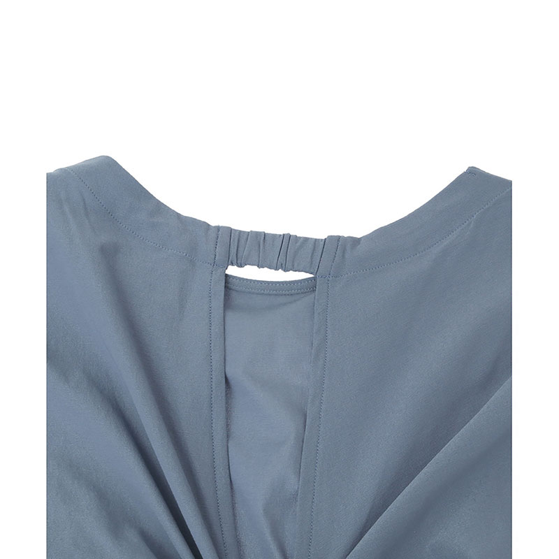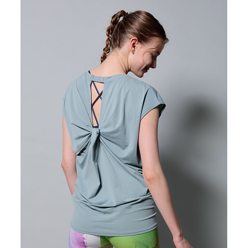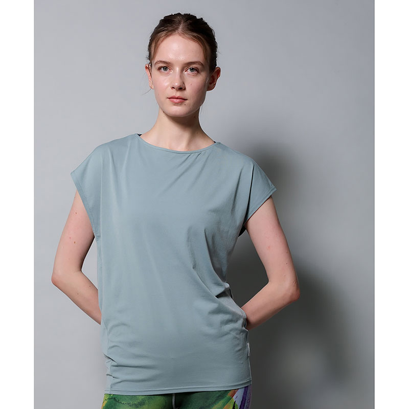 人気のチュニックに、ミントグリーン・ブルー・ネイビーの爽やかな新色が仲間入り。前はシンプル、後ろはクロスデザインと上品なドレープで、1枚でも着映え抜群です。広めの袖口が二の腕をすっきり見せ、お尻が隠れる丈感で安心感も。植物由来のエコ素材を使い、肌あたりも心地よく、高機能も魅力です。ヨガやワークアウトはもちろん、ボトムスにインして日常使いにもぴったりな一着です。
