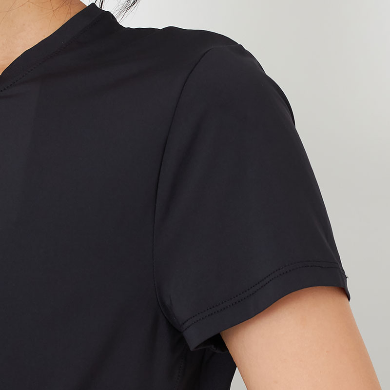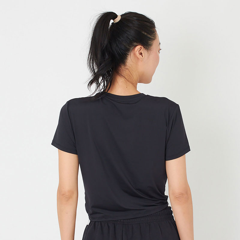 全方向に伸びる、薄手で軽いストレッチポリエステル生地で仕立てたカットソー。タックイン無しでもニュアンス感のあるスタイリングが叶う、ツイストデザインの裾がポイントのアイテムです。合わせるボトムを選ばないシンプルなワンカラーのトップスは、何枚あっても重宝するはず。