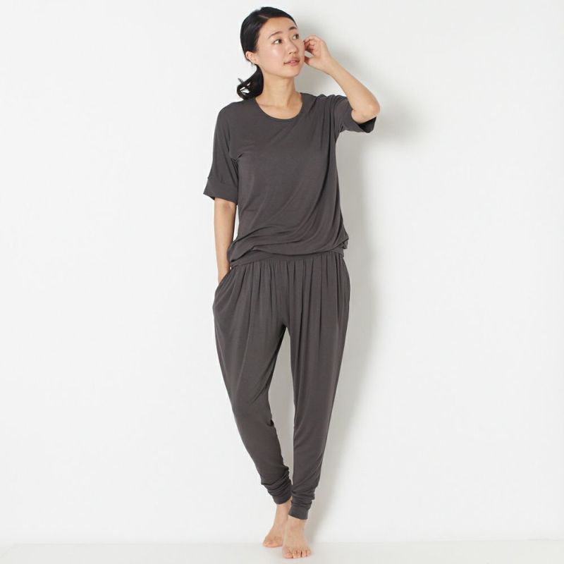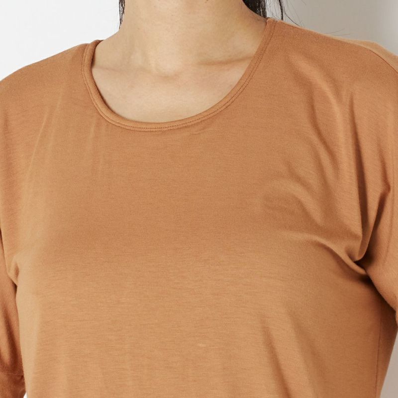 優れたストレッチ性となめらかな生地感で肌当たりの良さが魅力のレーヨン生地で仕立てたトップス。取り外し可能なブラパッド付きなので、一枚で安心して着られます。ヒップまでカバーする半袖デザインで体型カバー効果抜群。ウエストにかけての柔らかな落ち感が上品な一枚です。熱を吸収・放出して快適な肌表面温度を保つ温度調節素材アウトラストを採用しています。