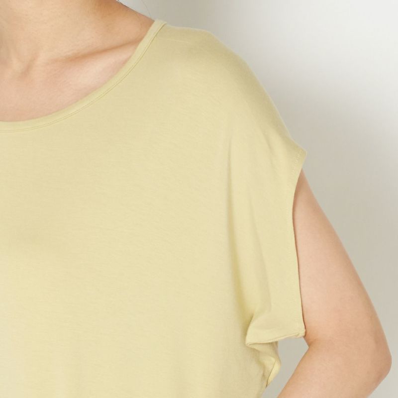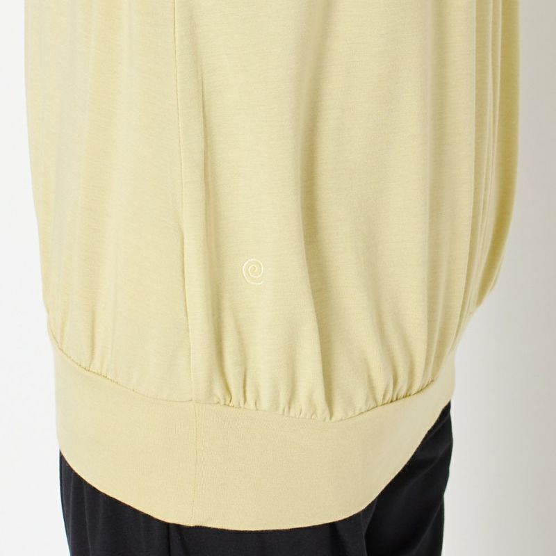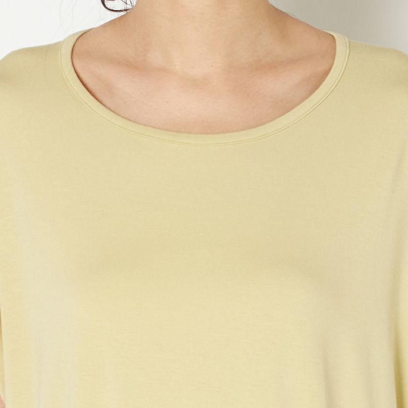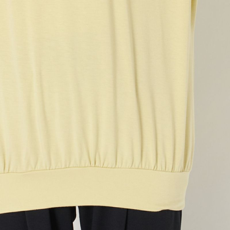 無地アイテムとも柄アイテムとも合わせやすい着まわし力の高さが魅力のトップス。やや薄手でさらっとした肌触りの生地を採用した、軽い着心地の一枚です。ボディラインを拾わないゆったりとしたシルエットと長めの着丈が、体型カバーに一役買ってくれます。