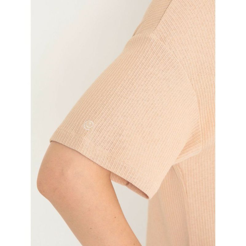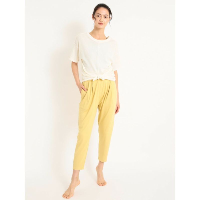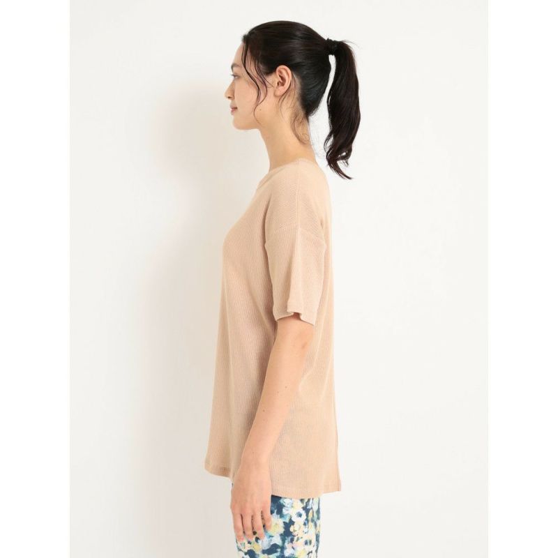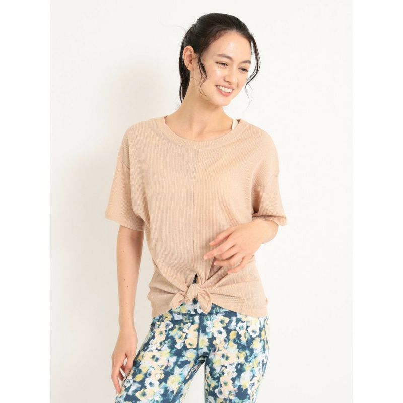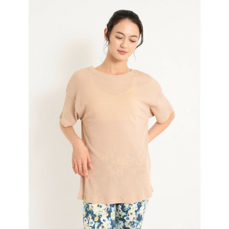 ナチュラルで独特のシボ感が春らしいリブ素材を使ったTシャツ。前後着用が可能となっており、スリット部分で結んでの着用も、ストンと落として着用もいただけます。コットン混のドライな薄手素材で、涼しげな着心地です。