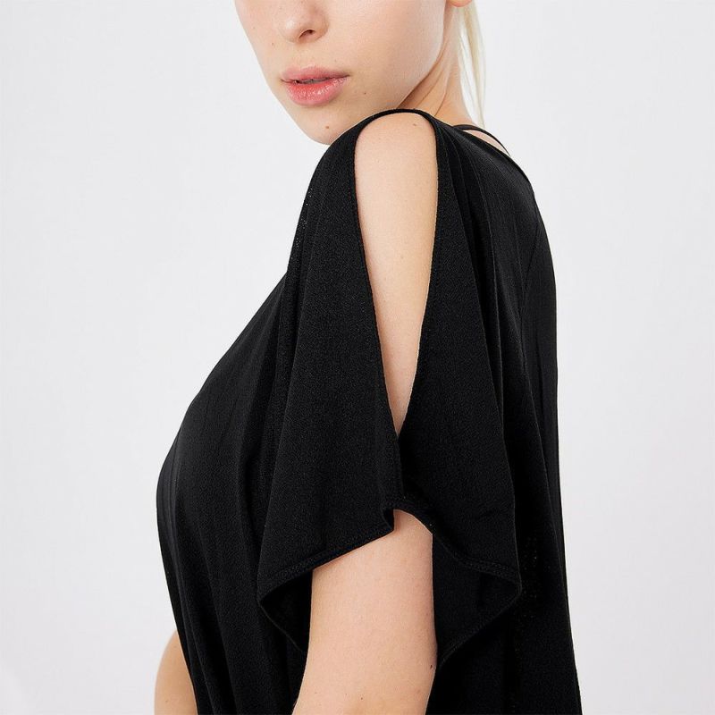 二の腕をチラ見せしたデザインが腕周りを華奢見えさせてくれるのもポイント。