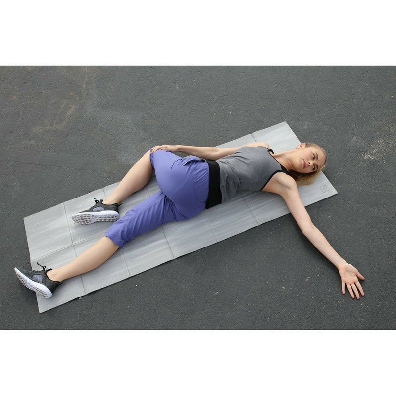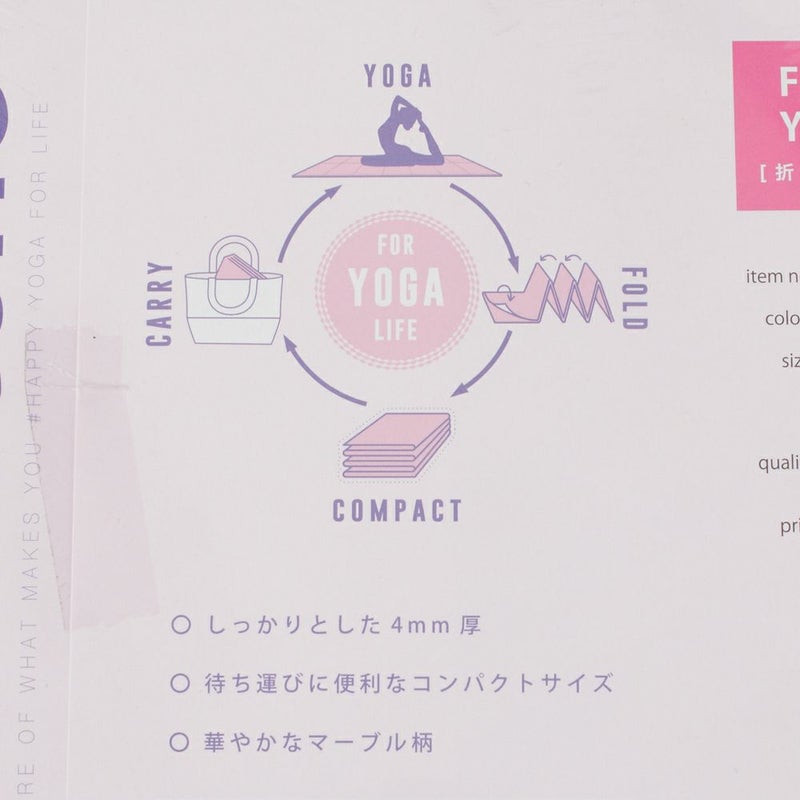 コンパクトに折り畳める、持ち運びに便利なヨガマット。しっかりとした4mm厚で、実用性の高いアイテムです。華やかなマーブル柄も、ヨガの気分を高めてくれます。ブランドロゴの型押しもポイントです。