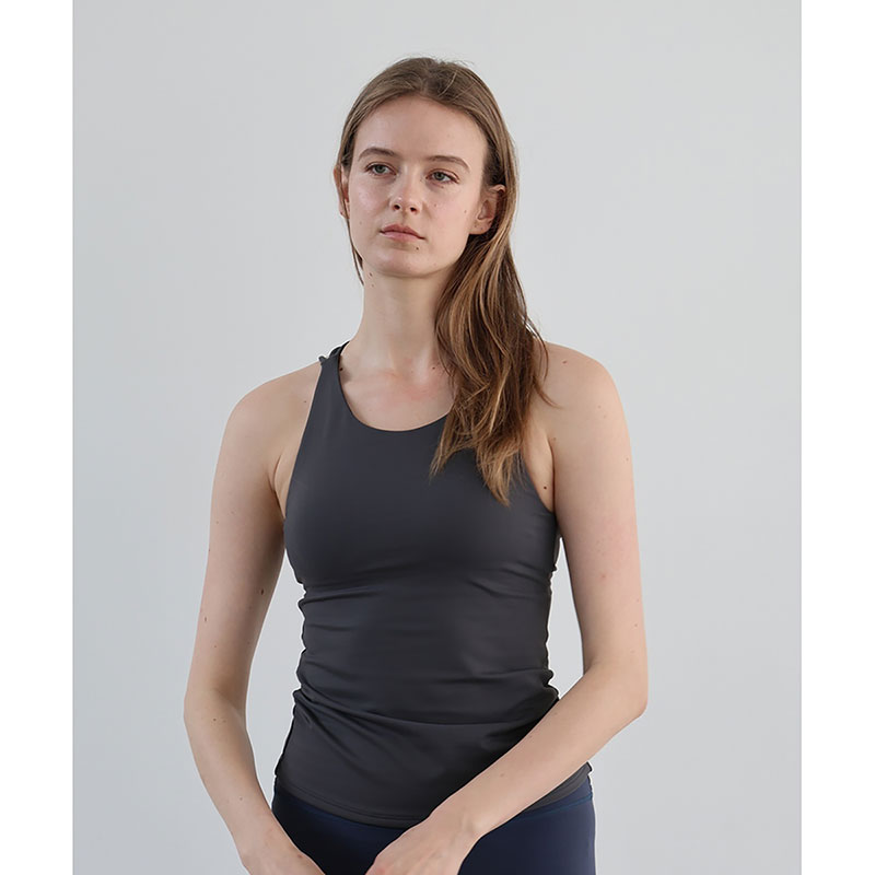 パウダリーで上質な肌触りと、しなやかなストレッチ性で人気の新定番素材から、キャミソールが登場。ヨガフィットで好評だった形をベースに、お腹をカバーする丈感はショートトップスが苦手な方にもおすすめです。背中が美しく映えるクロスデザインで、動きやすさも抜群。同素材のレギンスとセットアップで合わせるのはもちろん、定番のデザインだからこそ、プリントレギンスとの相性も良く、1枚持っておくと頼れる万能トップスです。