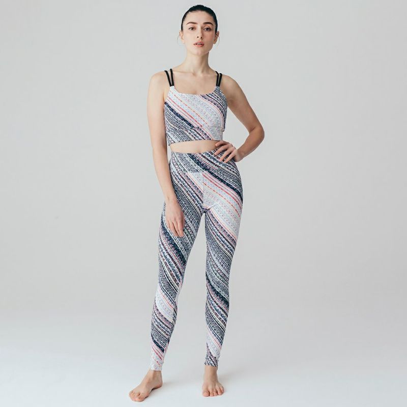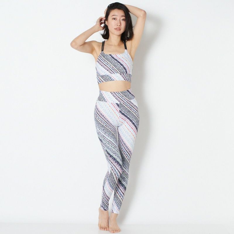 リジーオリジナルのプリントブラトップ。カラフルな色使いのバイアス柄です。細めの肩紐は華奢でスタイリッシュな印象に。伸びのよいストレッチ素材でなめらかな着心地です。同柄のレギンスとセットアップの着こなしが可能です。デザインは人気ファッションブランドDOUBLE STANDARD CLOTHINGが監修しています。