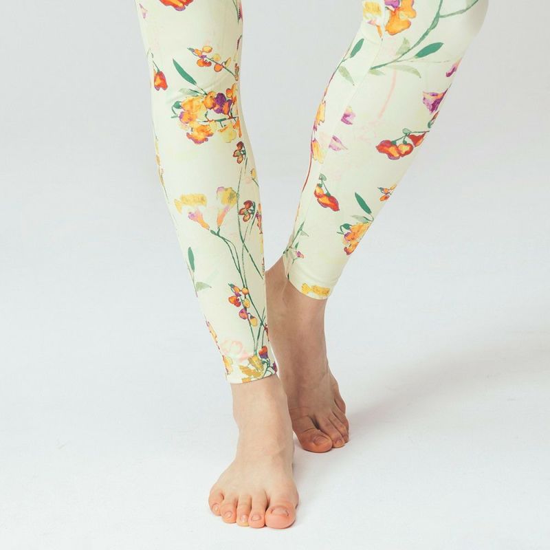 クロスデザインがウエストを美しく見せてくれるリジーオリジナルのプリントレギンス。春らしさ満載のフラワー柄です。伸びがよくストレッチが効いており、なめらかな着心地。女性らしさを引き立てる優しいピンクと、ヘルシーで明るい雰囲気のイエローの2色展開です。デザインはDOUBLE STANDARD CLOTHINGが監修しています。