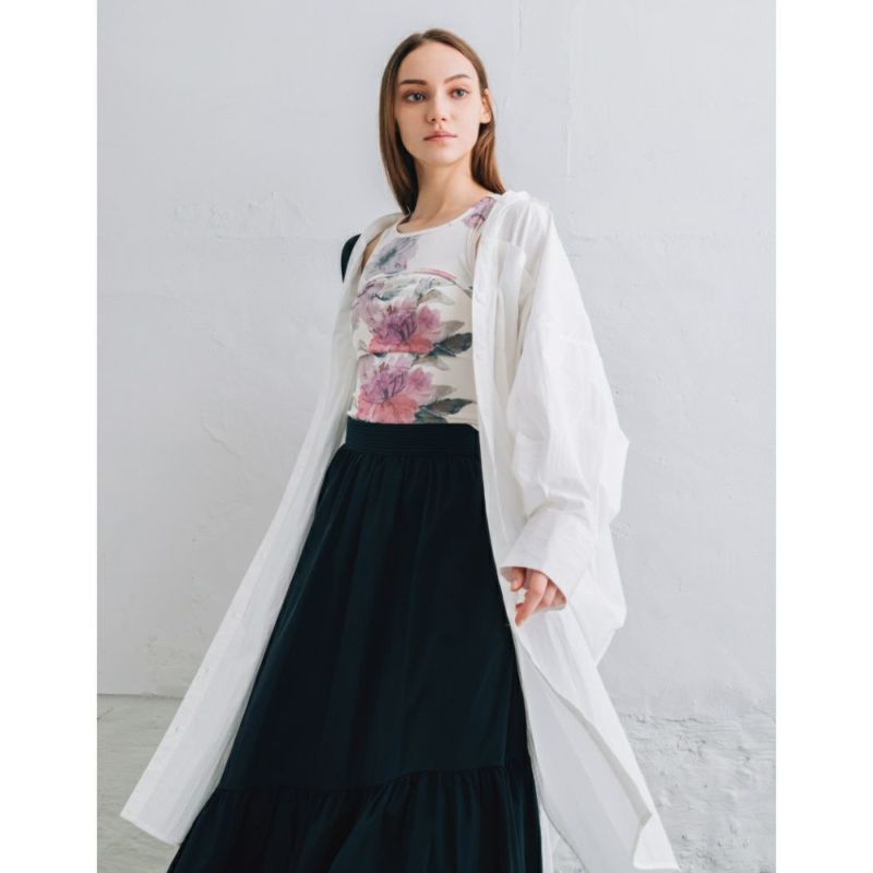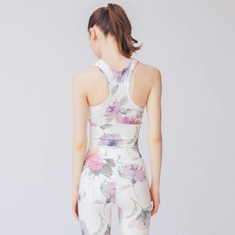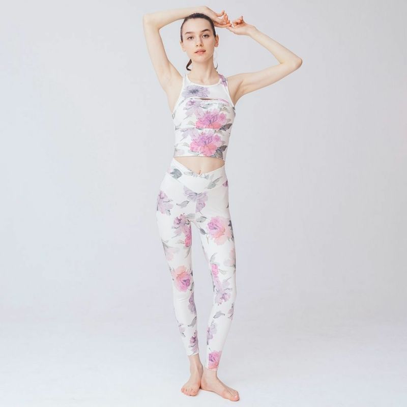 リジーオリジナルのプリントブラトップ。長めの丈感で露出を控えつつお腹周りをカバーしてくれます。柔らかく伸びのよいストレッチ素材でなめらかな着心地です。大きめの花柄を淡いピンクに仕上げたエレガントなフラワープリント。