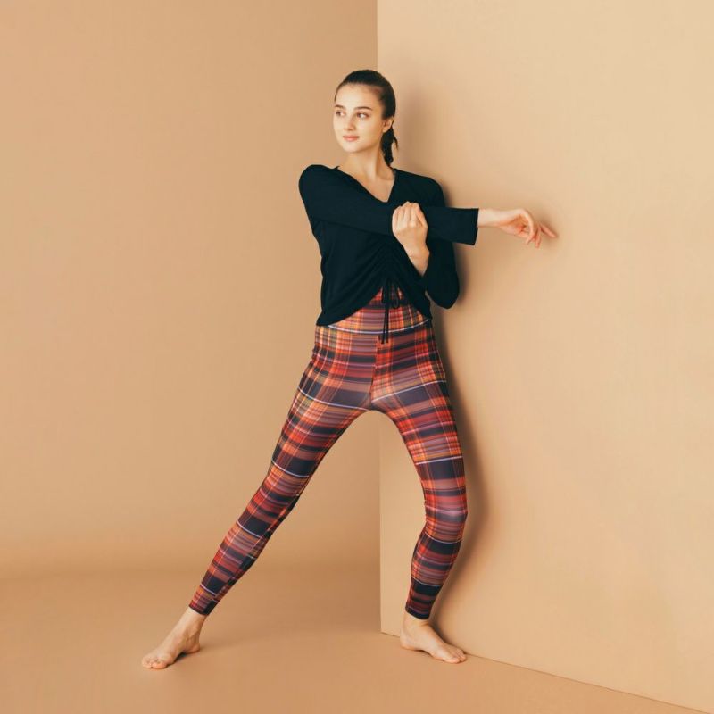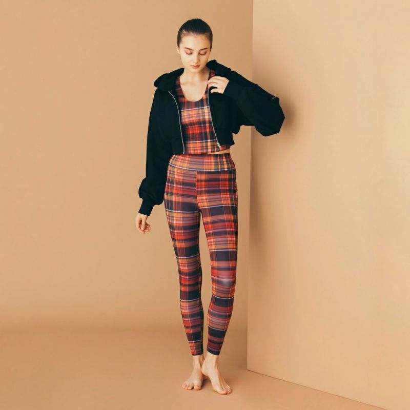 秋らしいチェック柄のプリントレギンス。鮮やかなレッドがコーディネートのアクセントになり1枚で主役になります。伸びのよいストレッチ素材でなめらかな着心地です。ウエストゴム入りでお腹周りを引き締めてくれます。