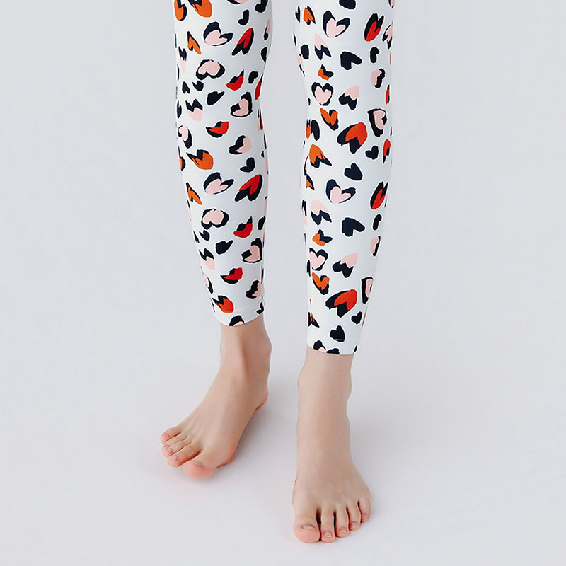 リジーオリジナルのプリントレギンス。甘すぎないレオパード調のハート柄で、オレンジ系のハート柄がヘルシーな印象にしてくれます。ウエストのゴムを無くし、締め付け感の少ない着心地に仕上げています。伸びがよくストレッチが効いており、なめらかな着心地です。デザインはDOUBLE STANDARD CLOTHINGが監修しています。