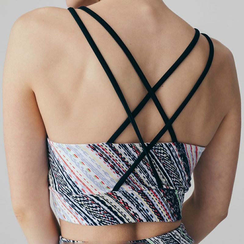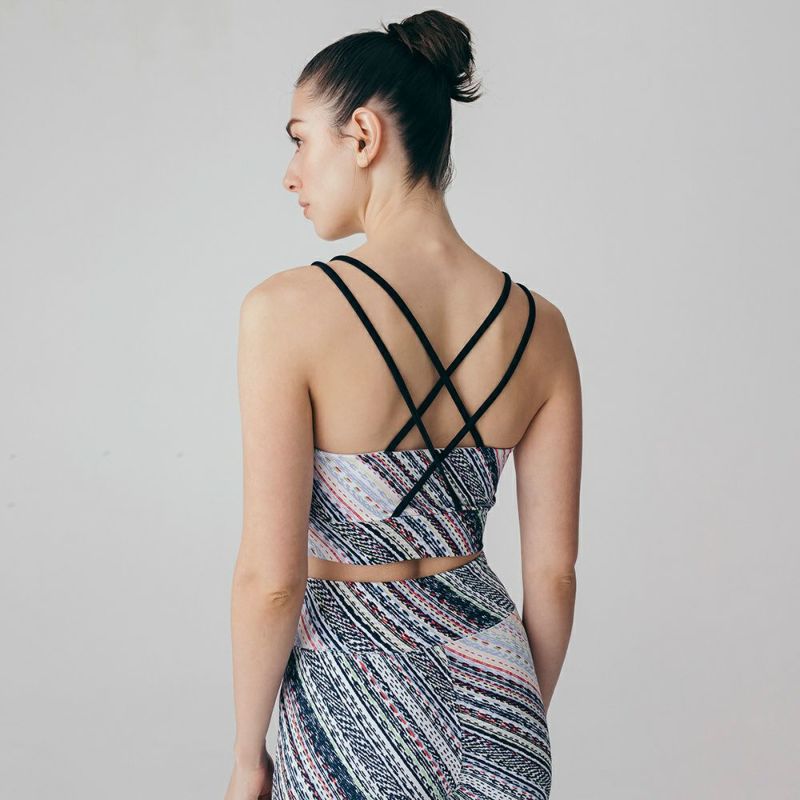 リジーオリジナルのプリントブラトップ。カラフルな色使いのバイアス柄です。細めの肩紐は華奢でスタイリッシュな印象に。伸びのよいストレッチ素材でなめらかな着心地です。同柄のレギンスとセットアップの着こなしが可能です。デザインは人気ファッションブランドDOUBLE STANDARD CLOTHINGが監修しています。
