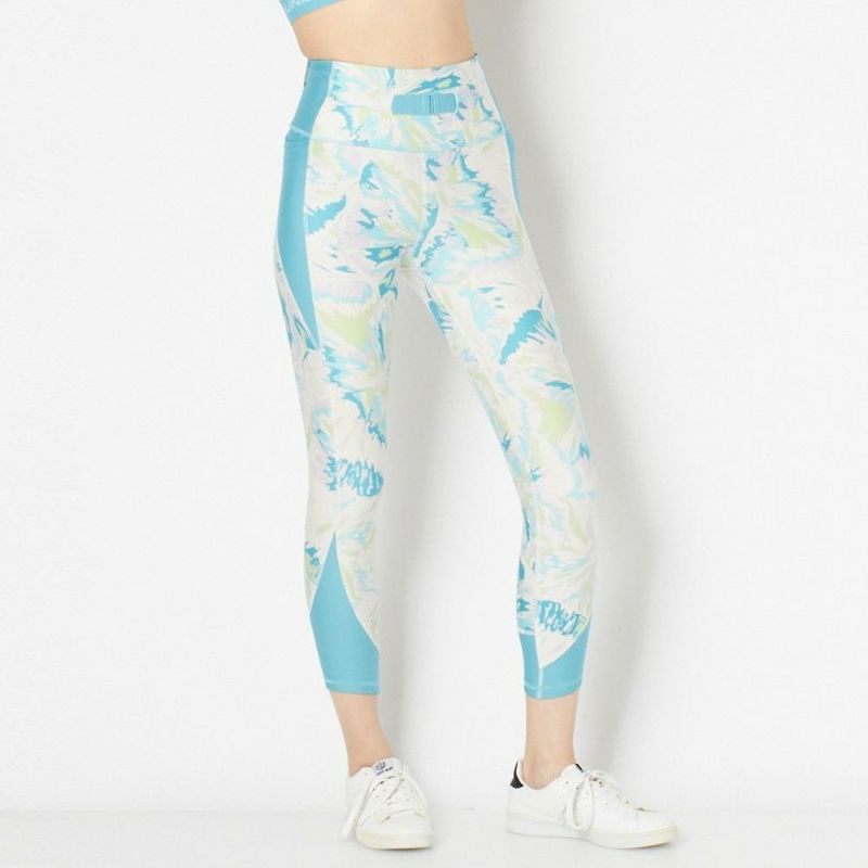 サラサラとした肌触りの中厚手ストレッチ生地を使用した9分丈レギンス。立体的な縫製で窮屈感がなく、快適な運動をサポートしてくれます。ミックスカラーのプリントが着映えする、コーディネートのアクセントにぴったりな一枚です。生地のストレッチ性を活かしたウエストは引き締め効果抜群で、ウエスト部分の平ゴムはフロント側にのみ付いています。