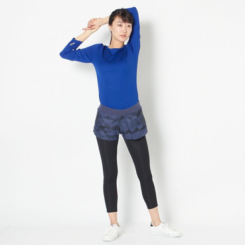 少し厚めの生地で温かみと加圧感も感じるタイツ。ストレッチが効いているので、ランニングに最適です。裾にジッパーがついているので、体型に合わせてシルエットを変えることも可能です。