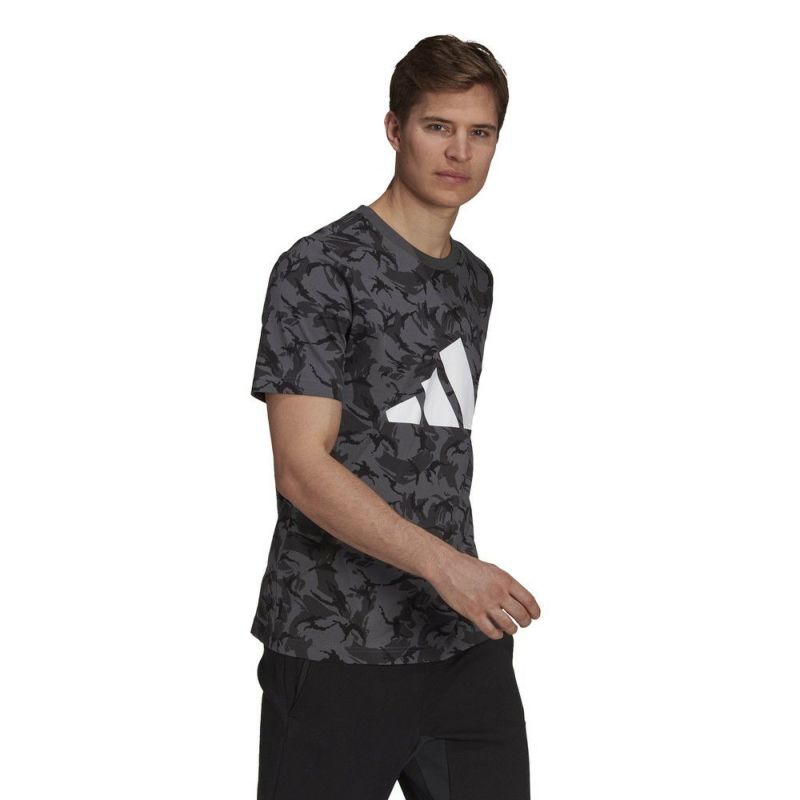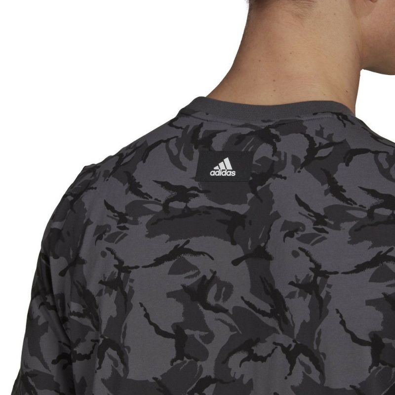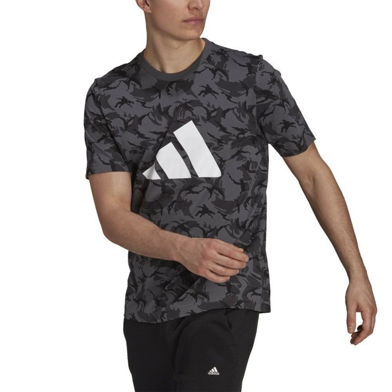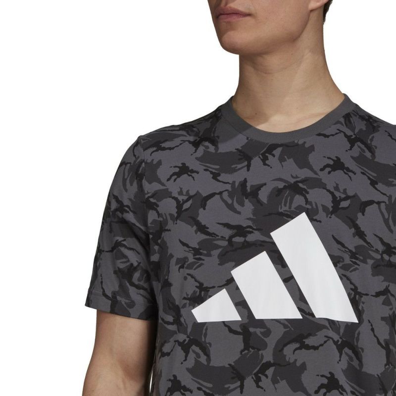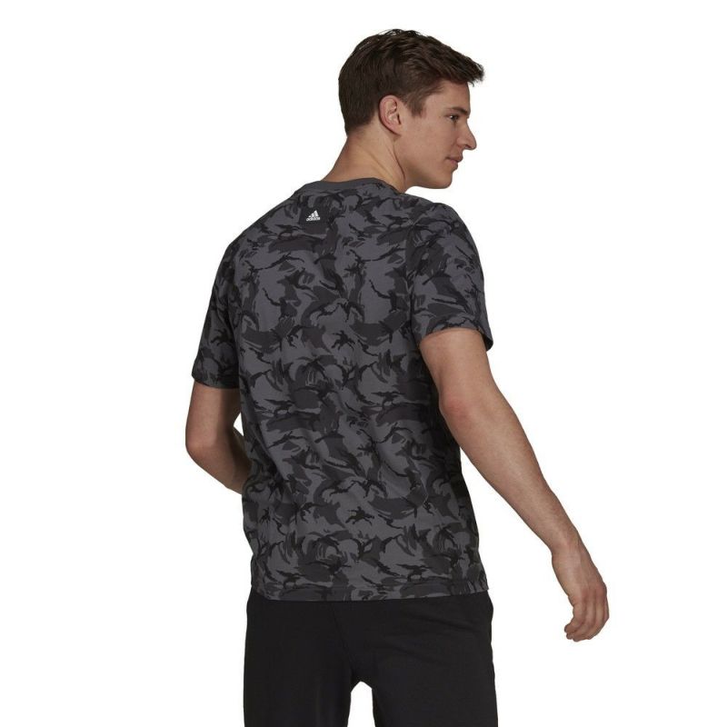 フロント部分のブランドロゴプリントが印象的な総柄のTシャツ。ダークな色合いで派手になり過ぎず、コーディネートのアクセントになるアイテムです。ストレッチ性のある薄手で柔らかなコットン生地を使用した、肌当たりが良く着心地も良好です。ランニング時にはもちろん、タウンユースにもおすすめです。カラー品番:マルチカラー/グレーシックス(HA8707)