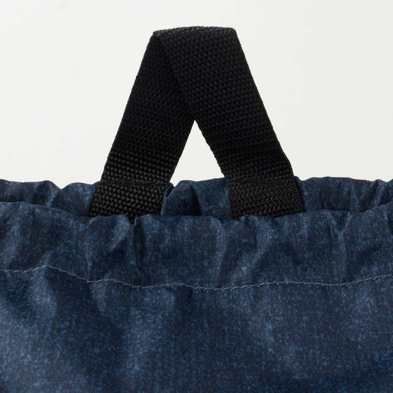 ちょっとした汚れや水濡れにも耐える、軽くて丈夫なポリエステル素材で仕立てたジムバッグ。巾着式タイプなので手軽に開閉ができ、中身も出し入れしやすくなっています。薄くて軽いので、使用しないときは畳んでバッグに収納可能です。