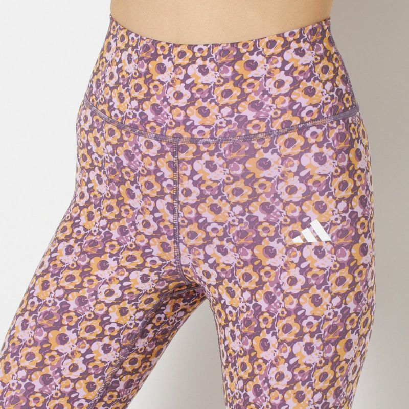 ミックスカラーのフラワープリントを全面にデザインした9分丈タイツ。柄が細かいので、無地アイテムはもちろんプリントTなどとも合わせやすくなっています。滑らかな肌触りでストレッチ性の高い、やや厚手のポリエステル生地を使用し、しっかりと足を引き締めてくれます。お腹まで覆う股下深めの作りで、快適なランニングをアシスト。